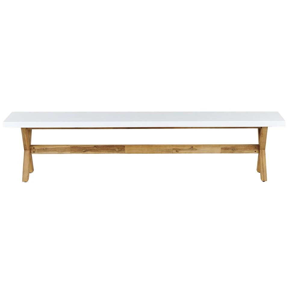 Moderne tuinbank van vezelcement en acaciahout. Geniet van zomeravonden voor twee of geniet van een barbecue-avond – deze bank kan snel worden geplaatst waar u maar wilt. Gemaakt van onderhoudsvriendelijk, weer- en weerbestendig vezelcement met een stabiele basis van duurzaam acaciahout, de zitting is duurzaam en gaat jarenlang mee, zelfs met minimaal onderhoud.