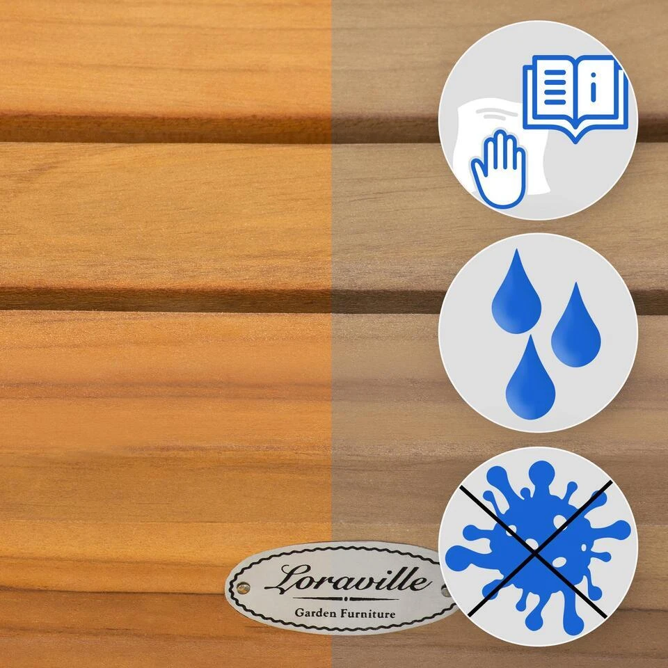 Gemaakt van robuust teakhout is deze zitbank niet alleen esthetisch aantrekkelijk, maar ook duurzaam en weerbestendig. Teakhout staat bekend om zijn natuurlijke weerbestendigheid en kan het hele jaar door buiten staan zonder zijn kwaliteit of schoonheid aan te tasten. U hoeft zich geen zorgen te maken dat de bank wordt beschadigd door regen, zon of andere weersinvloeden.