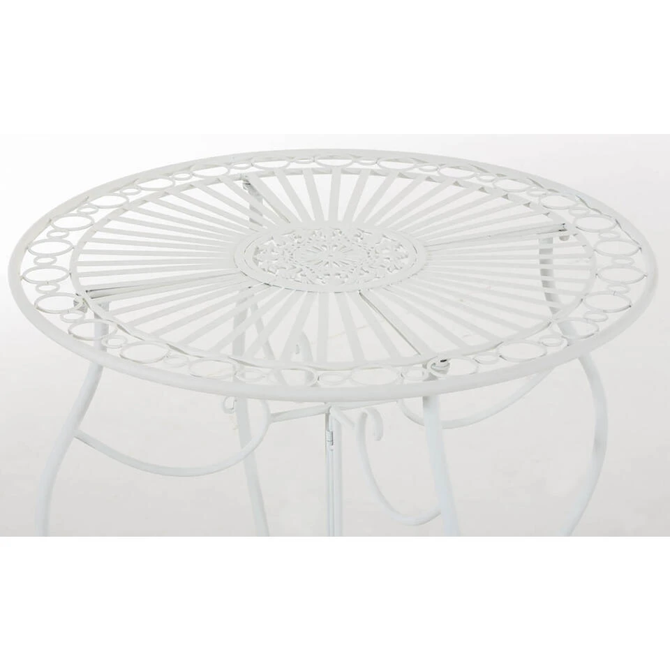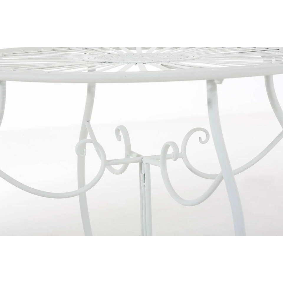 Deze prachtige tafel in nostalgisch design is een echte blikvanger op elk terras en in elke tuin. Het maakt indruk met zijn sierlijke vorm en de liefdevol met de hand gemaakte details van de ornamenten. Het is perfect om een speciale toets te geven aan uw tuinontwerp en is gemaakt om uw gezellige favoriete plekje in de tuin te verfraaien met zijn charme uit lang vervlogen tijden.