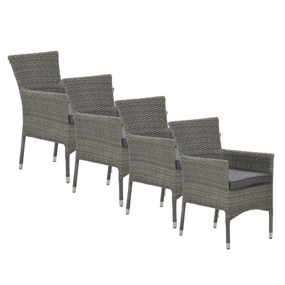 De vier Jerba tuinstoelen zijn gemaakt van een stevig aluminium binnen frame met daaromheen 7mm wicker vlechtwerkdraad in de kleur organic grey. Dit wicker is gemaakt van stevig kunststof waardoor de stoel zeer duurzaam is.