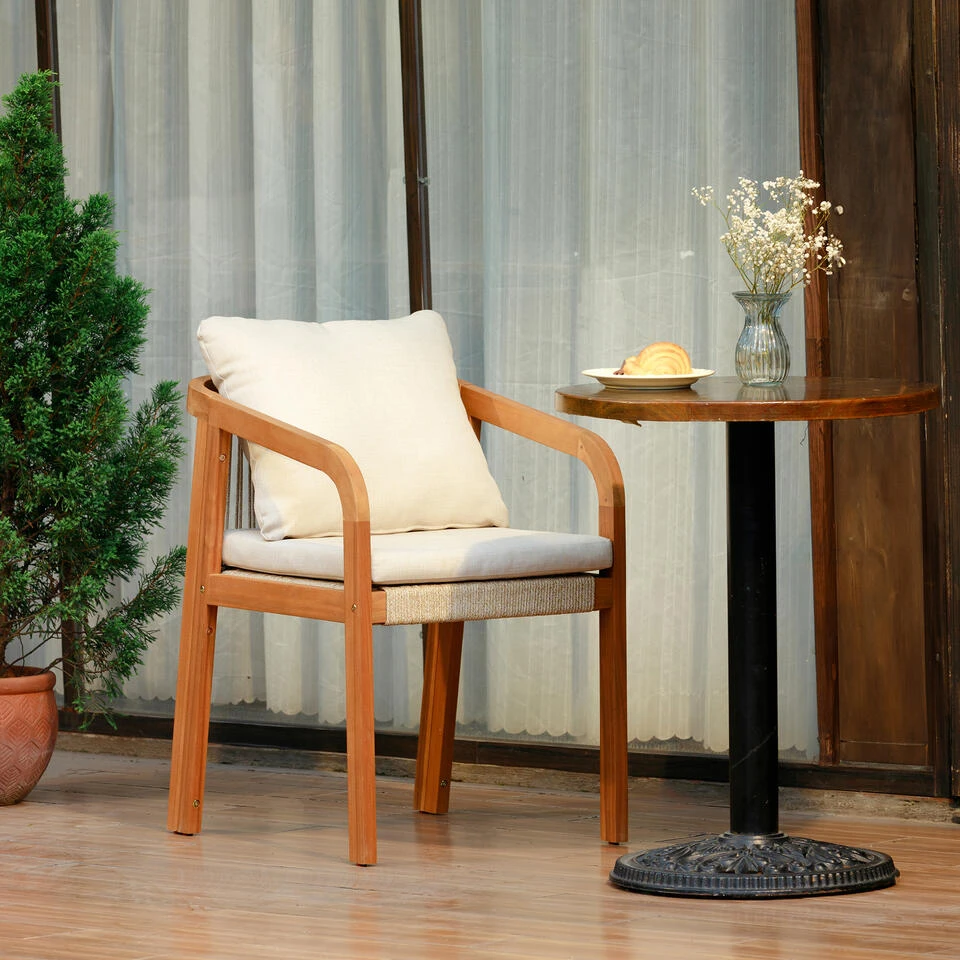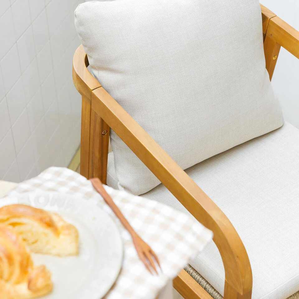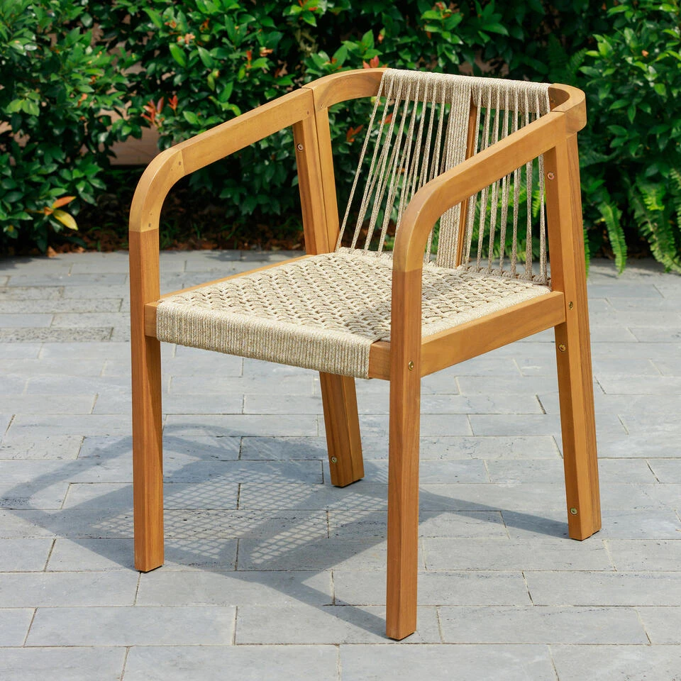 De massief houten binnen/buitenstoelen DELGADO zijn de perfecte combinatie van comfort, duurzaamheid en tijdloos design. Hun Scandinavische stijl zal een moderne touch geven aan uw binnen- of buitenruimte. Met een maximaal ondersteund gewicht van 120kg zijn deze stoelen ideaal om uw gasten veilig te ontvangen. Gemaakt van acacia, een houtsoort die bekend staat om zijn stevigheid en weerbestendigheid, zijn ze ook FSC-gecertificeerd voor verantwoord bosbeheer. De beige kleur van de stoffen geeft een warme uitstraling aan uw interieur, en is gemakkelijk te onderhouden. Of het nu gaat om ontspannen buitenshuis of om een vleugje charme toe te voegen aan uw interieur, de DELGADO stoelen zullen voldoen aan al uw verwachtingen op het gebied van comfort, duurzaamheid en design. Dit product bevat hout, een natuurlijk materiaal waarvan de kleur licht kan variëren afhankelijk van de verlichting. Dit product is behandeld voor zowel binnen- als buitengebruik.