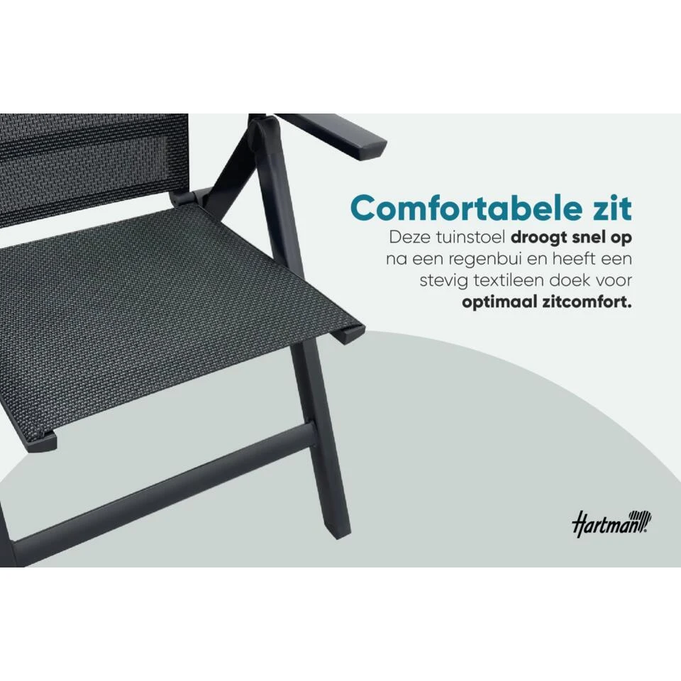 Dit is 6x de Napoli verstelbare tuinstoel van het bekende tuinmeubelmerk Hartman. De Napoli standenstoel is een perfect geschikt om heerlijk aan tafel te dineren maar, met de verstelbare rugleuning ook heerlijk om lekker te relaxen in je tuin of op je balkon. En doordat de stoel inklapbaar is, is deze makkelijk op te bergen!