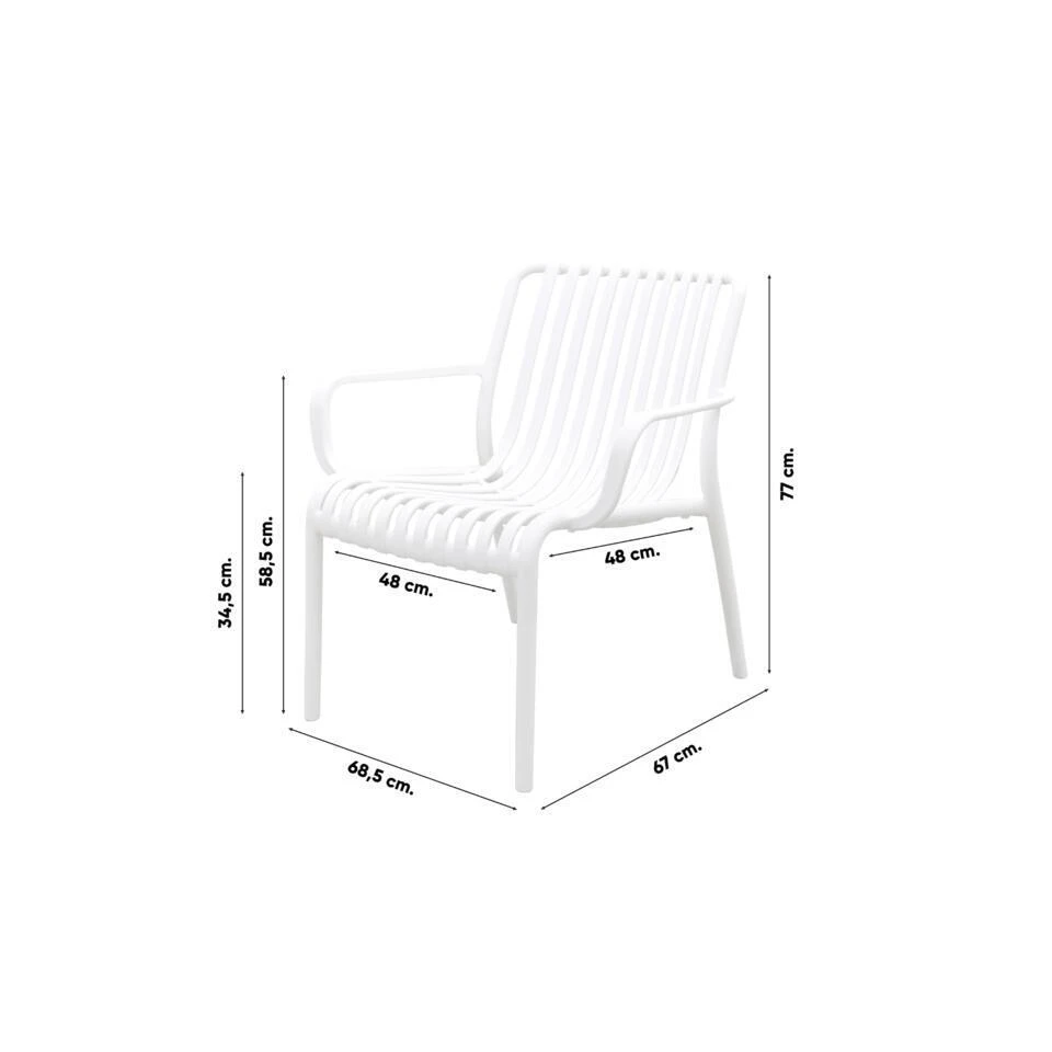 Ontdek de Stripe loungestoel, gemaakt van hoogwaardig kunststof en uitgevoerd in een elegante witte kleur. Deze stoel is een ideale aanvulling op elke buitenruimte en past bij elke stijl. Het duurzame, weerbestendige kunststof is perfect voor het Nederlandse klimaat en bovendien zeer onderhoudsvriendelijk. Door het lichte gewicht kun je de stoel eenvoudig verplaatsen in je tuin. Beleef het buitenleven op zijn best met de comfortabele en praktische Stripe loungestoel.