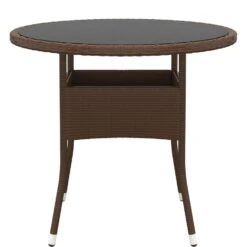VidaXL – Tuintafel – Bruin – Gehard Glas En Poly Rattan – Ø80×75 Cm