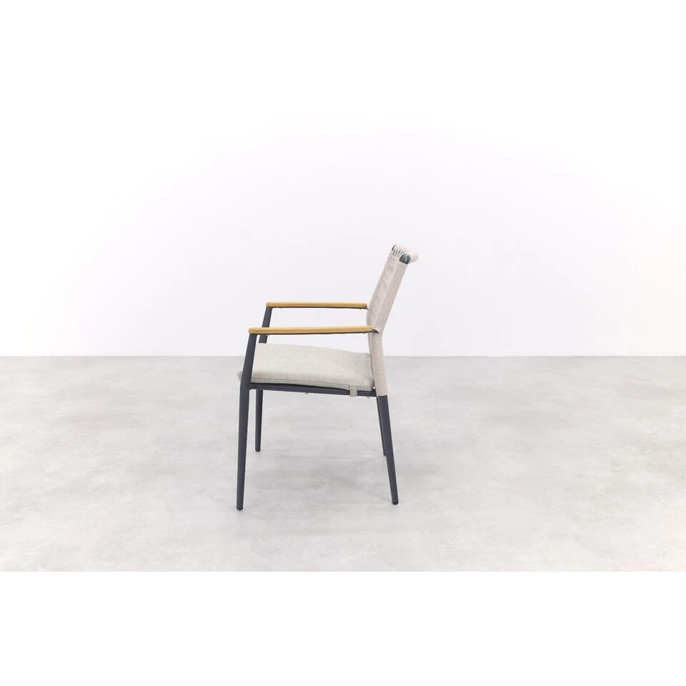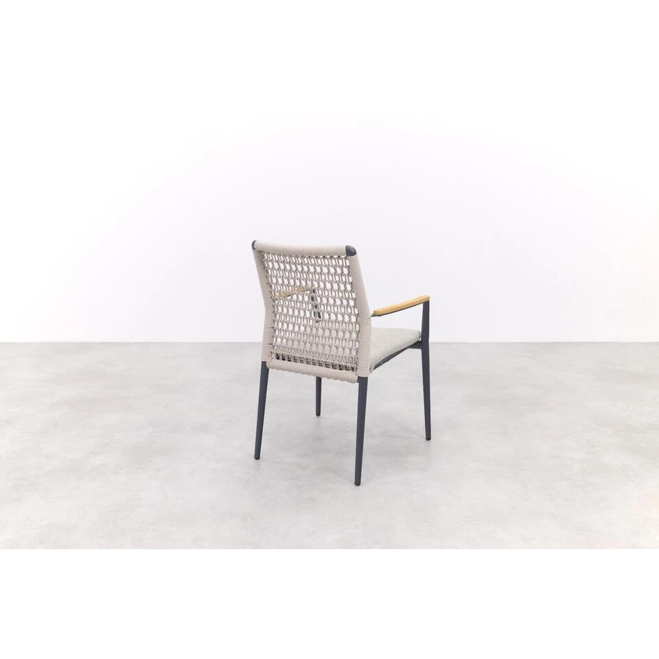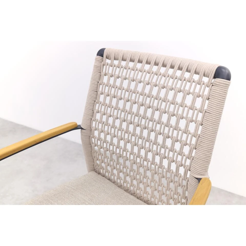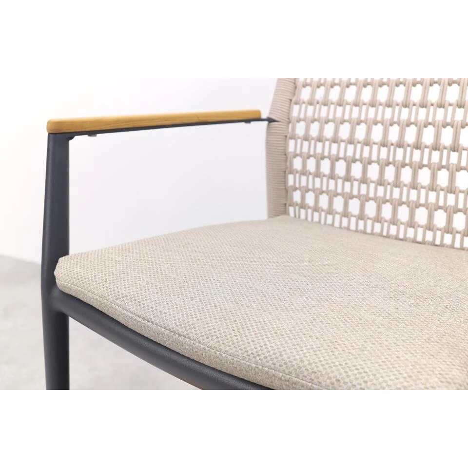 De Lumino stoel is gemaakt van een stevig, lichtgewicht aluminium frame, wat niet alleen praktisch maar ook volledig weerbestendig is. De armleuningen zijn afgewerkt met teakhout, wat zorgt voor een warme en natuurlijke uitstraling. De rugleuning, afgewerkt met een stijlvol rope-patroon, en de zandkleurige kussens bieden niet alleen comfort maar ook een moderne look. Dankzij de stapelbare functie is de Lumino niet alleen mooi, maar ook ruimtebesparend en makkelijk op te bergen. Verkrijgbaar in deze prachtige zandkleur én in het antraciet, zodat je altijd de perfecte match voor jouw tuin vindt!
