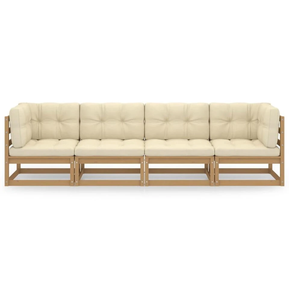 De houten bank is gemaakt van massief grenenhout, waardoor hij stevig en stabiel is. Deze tuinbank heeft een massieve constructie en vergt weinig onderhoud. De kussens zorgen voor extra comfort. De tuinbank geeft je buitenruimte een vleugje rustieke charme.